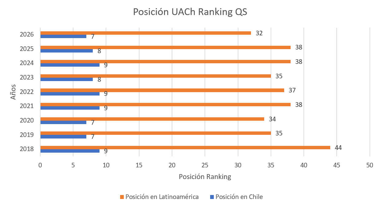 A continuación se observa la posición de la UACh en comparación con otras universidades Chilenas.